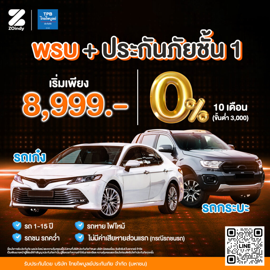 Package ซื้อคู่ พ.ร.บ. + ประกันภัยชั้น 1 รถเก๋ง ราคาเพียง 8,999 บาท