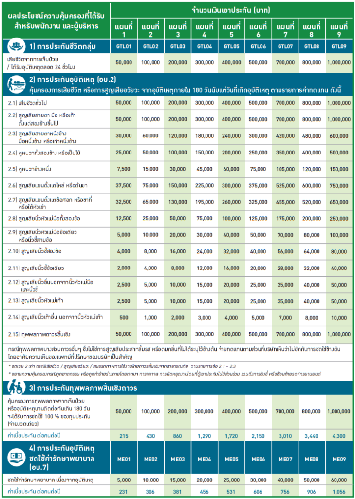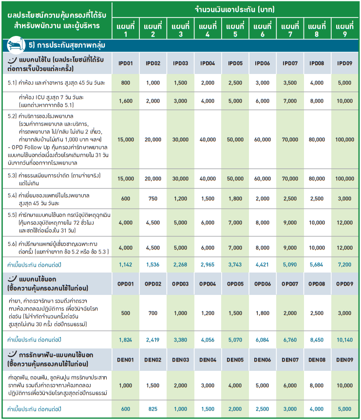 รายละเอียดแผนความคุ้มครอง (แพ็คเกจเริ่มต้น) : สำหรับพนักงานและผู้บริหาร